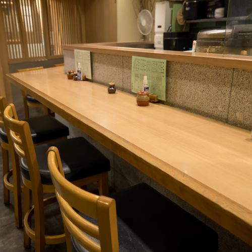 店内は落ち着いた雰囲気で、静かにゆったりとお食事やお酒をお楽しみいただける空間となっております♪調理の様子を特等席でお楽しみいただけるカウンター席もあり、おすすめのお料理やお酒などについての会話をお楽しみいただくのもオススメ★楽しい時間をお過ごしください♪